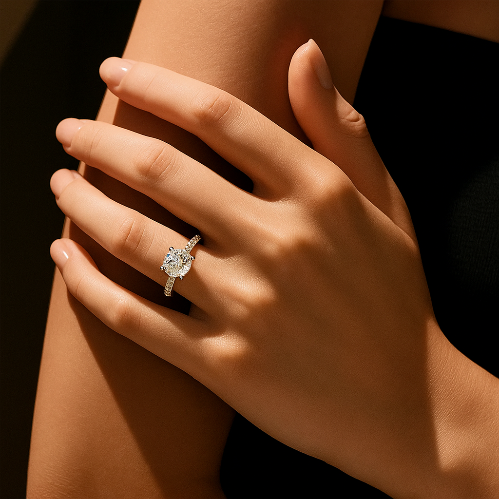Steengrootte: 8 × 12 mm — vergelijkbaar met 3 karaat
