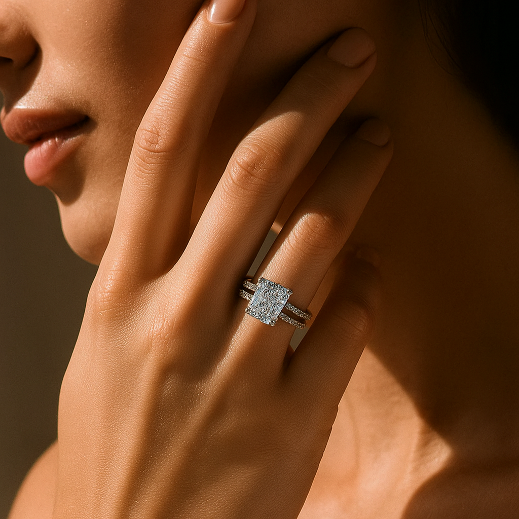 Bestaat uit 92,5% puur zilver vermengd met 7,5% koper — sterk, comfortabel en met een tijdloze glans.