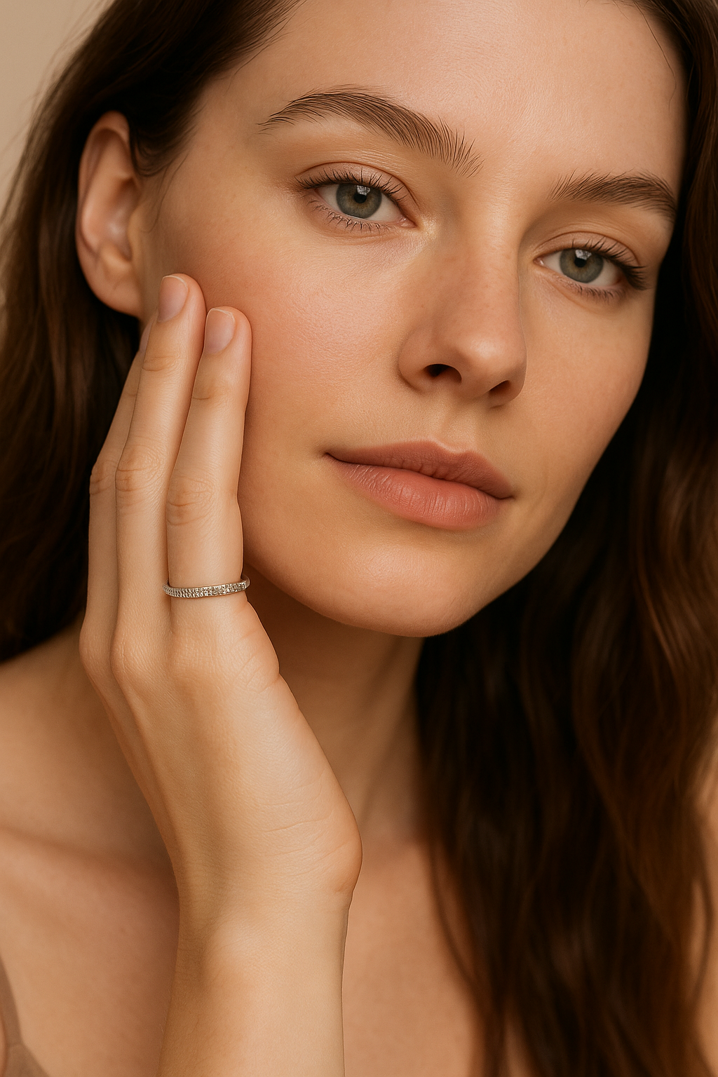 Subtiel, tijdloos en verfijnd — de Luna Ring van GLISH Amsterdam is ontworpen om elegantie te vangen in haar puurste vorm.